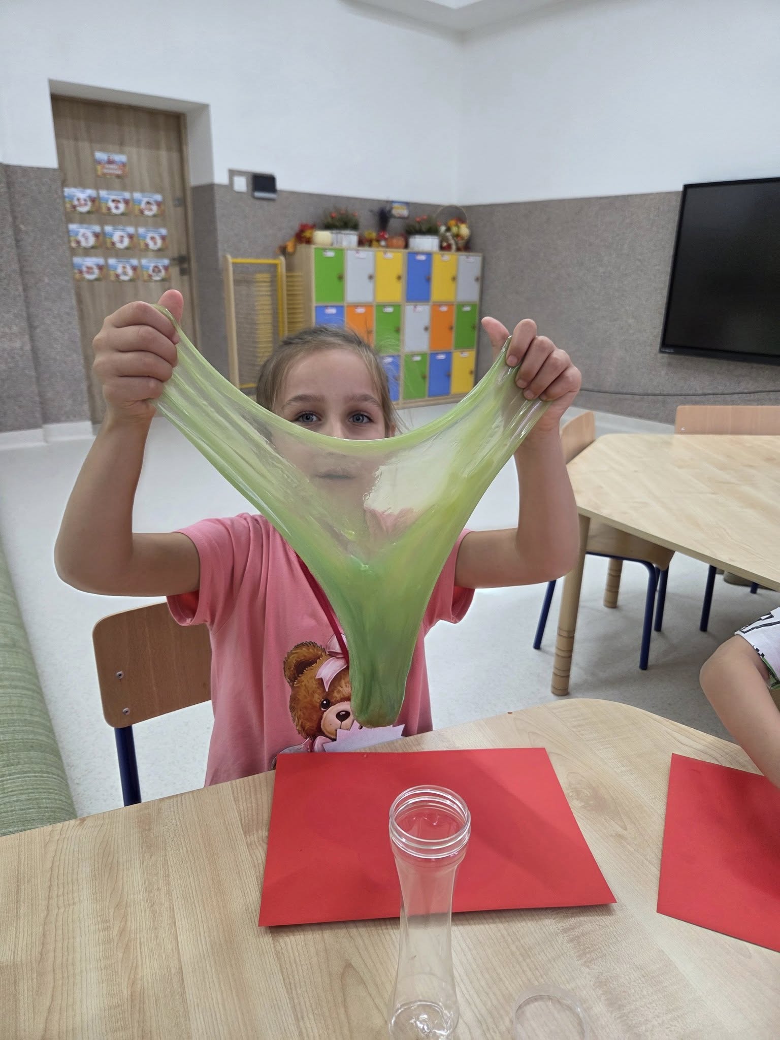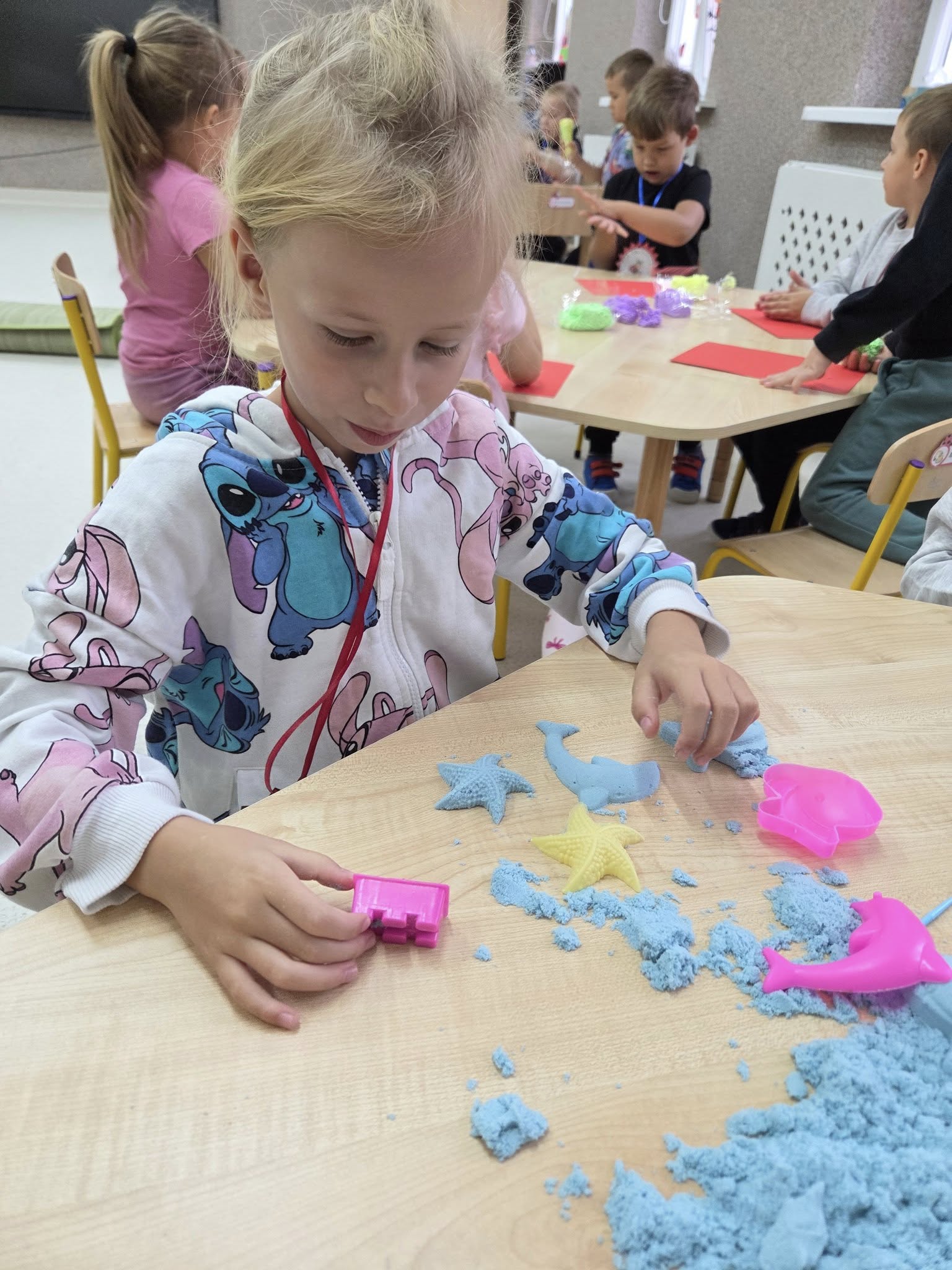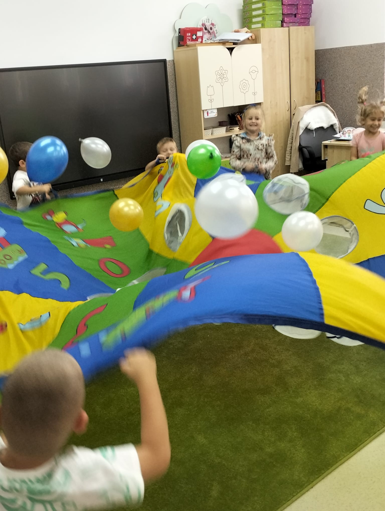 Dzieci uczestniczyły w różnorodnych atrakcjach – bawiły się z chustą animacyjną, brały udział w zabawach sensorycznych oraz pokonywały ścieżkę zmysłów. Przedszkolaki samodzielnie wykonały także ciastolinę i piankolinę, ![]()