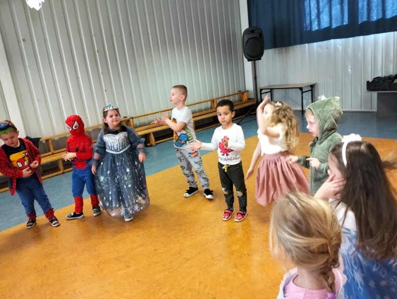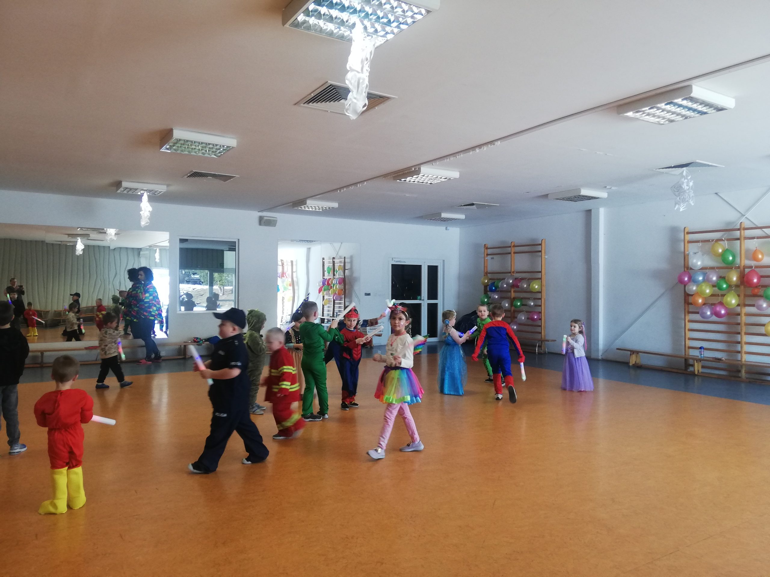 Przedszkolaki z dumą prezentowały karnawałowe stroje. Dzieci przebrane były za bohaterów znanych bajek, można było spotkać wróżki, księżniczki, syrenki, motylki, piratów, strażaków, policjantów, Spider-Mana, Batmana.