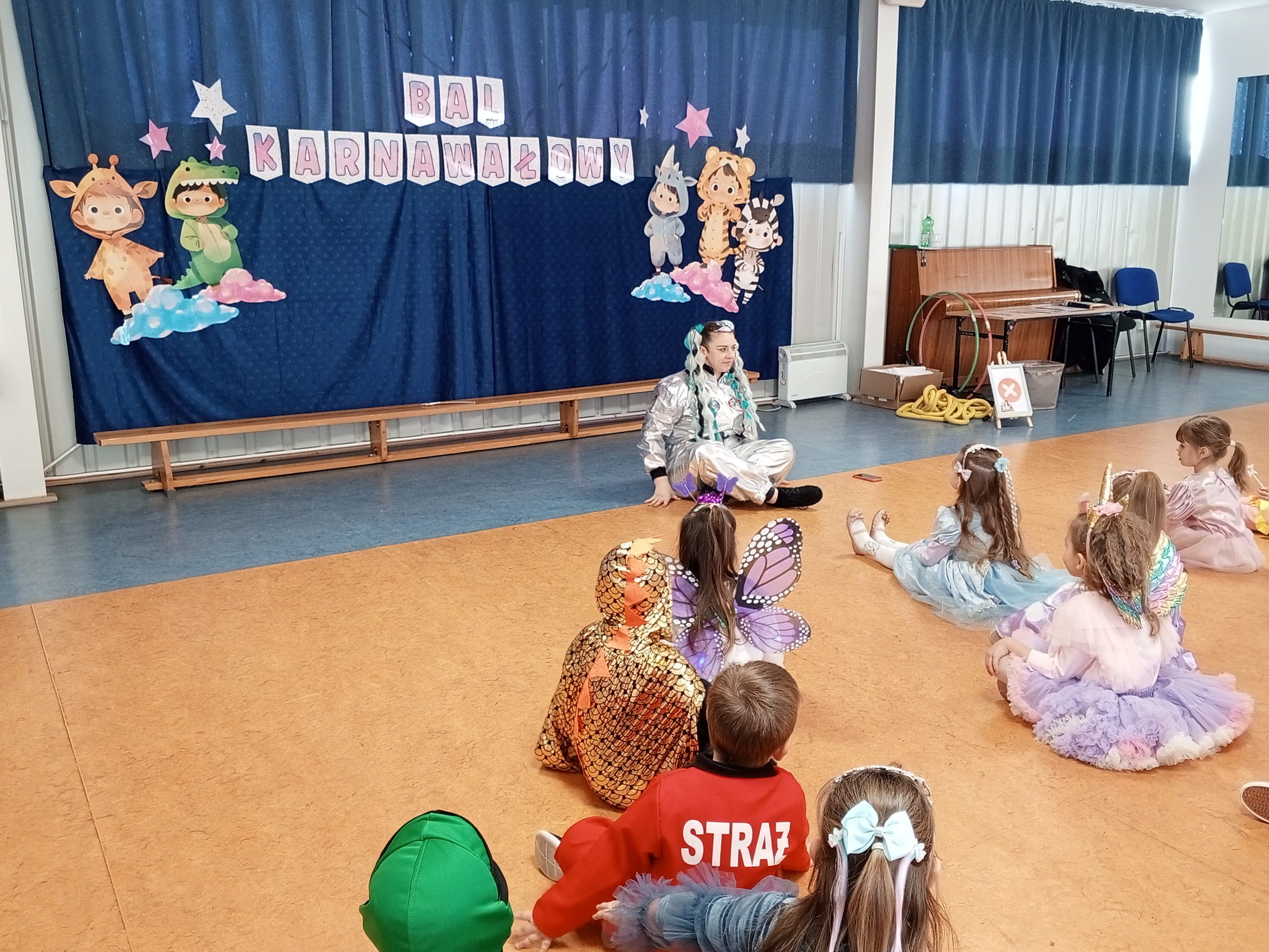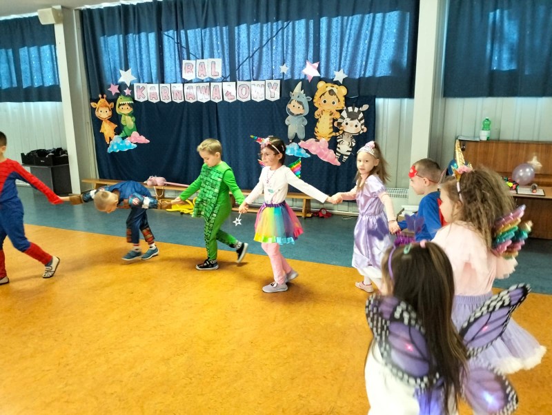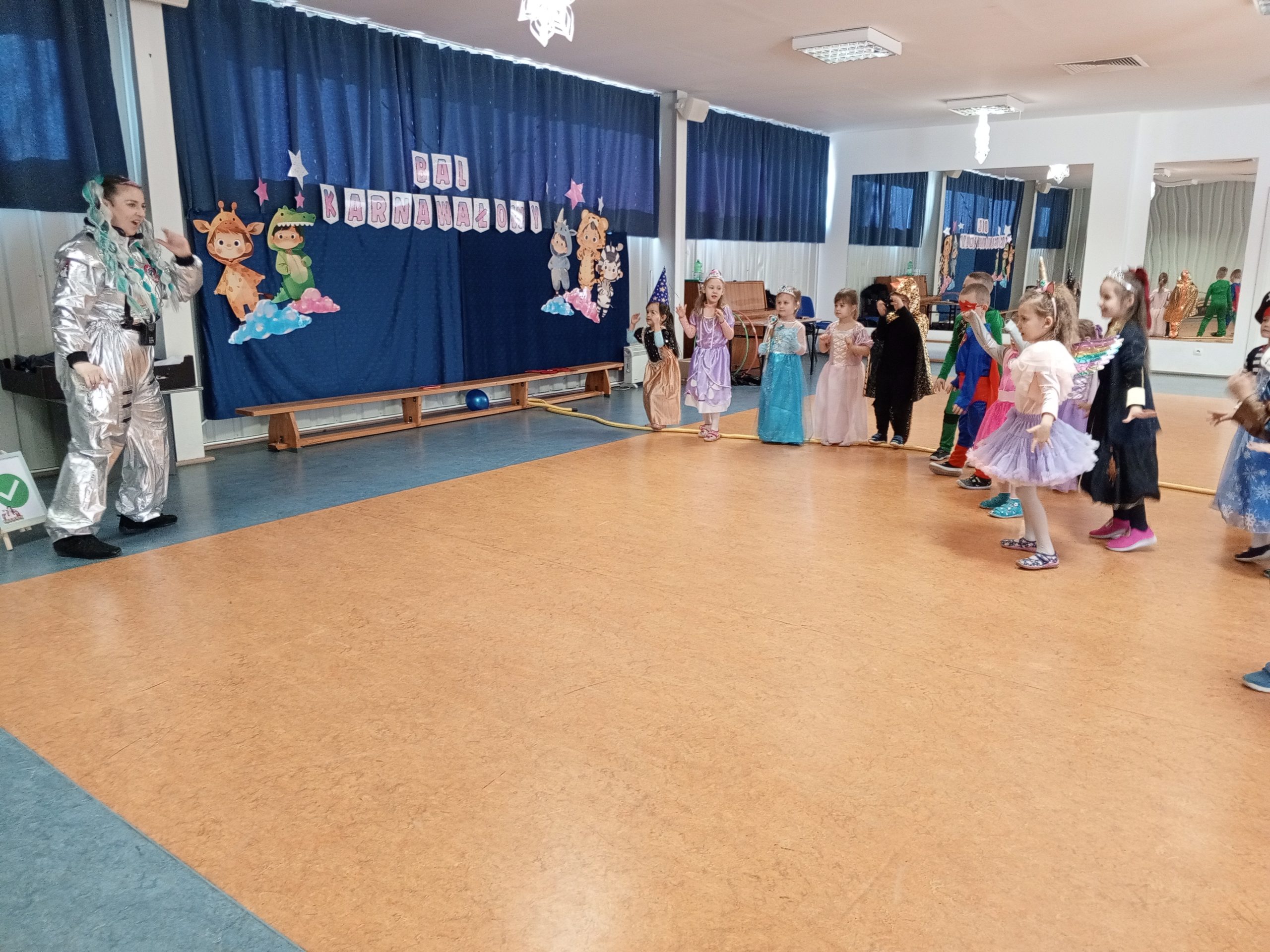 Karnawał to czas zabaw i balów, także dla najmłodszych. Kolorowe stroje, bajeczny wystrój i skoczna muzyka- w takiej atmosferze bawiły się dzieci 20 lutego podczas balu karnawałowego w naszym przedszkolu.