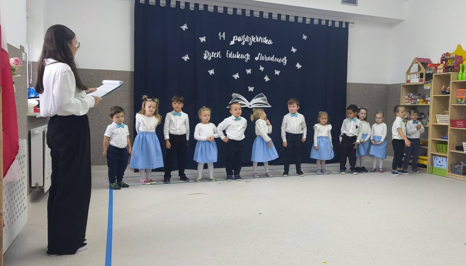 Dnia 15 października 2025 roku w naszym przedszkolu odbyła się uroczystość z okazji Dnia Edukacji Narodowej. Z tej okazji dzieci z grup „Biedronki” i „Misie” przygotowały dla wszystkich pracowników przedszkola krótki program artystyczny.
