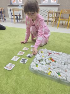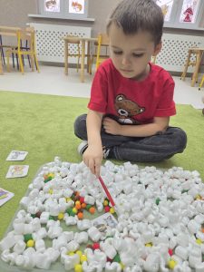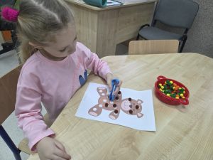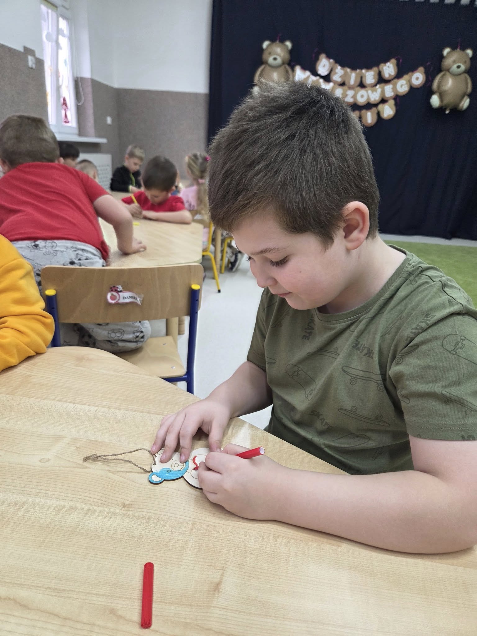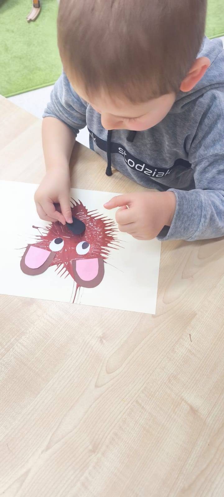 Dzieci wykonały również prace plastyczne o tematyce misiowej, rozwijając swoją kreatywność oraz sprawność manualną. Nie zabrakło także rozmów o ulubionych pluszakach, zagadek i zabaw związanych z misiami.