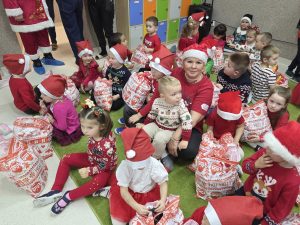 Dzieci z ogromnym entuzjazmem przywitały Mikołaja i wspaniale bawiły się podczas wspólnych zabaw. Przedszkolaki zaprezentowały mu przygotowane piosenki, które wywołały wiele uśmiechów i radości.