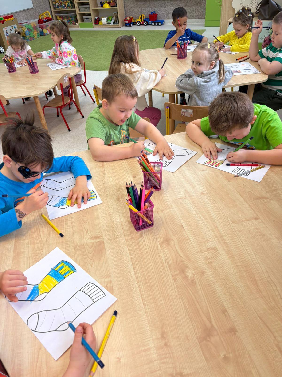 Z tej okazji dzieci przyszły ubrane w wiosenne stroje, a także założyły kolorowe- nie do pary skarpetki na znak solidarności i akceptacji różnorodności.![]()
