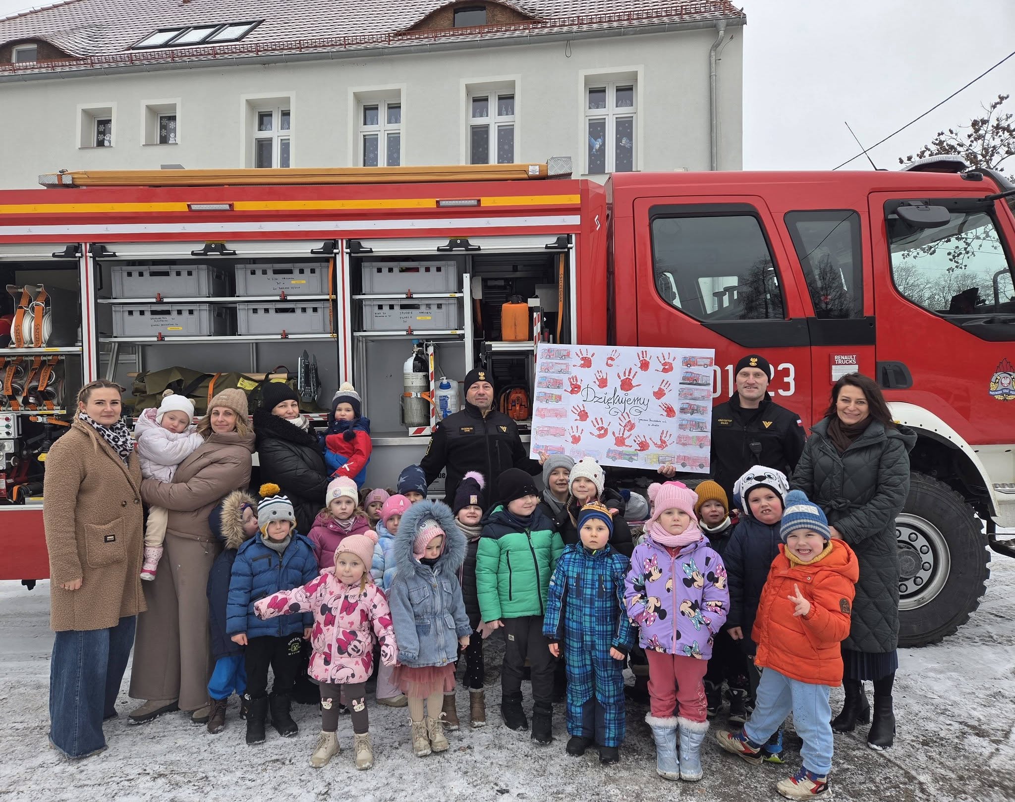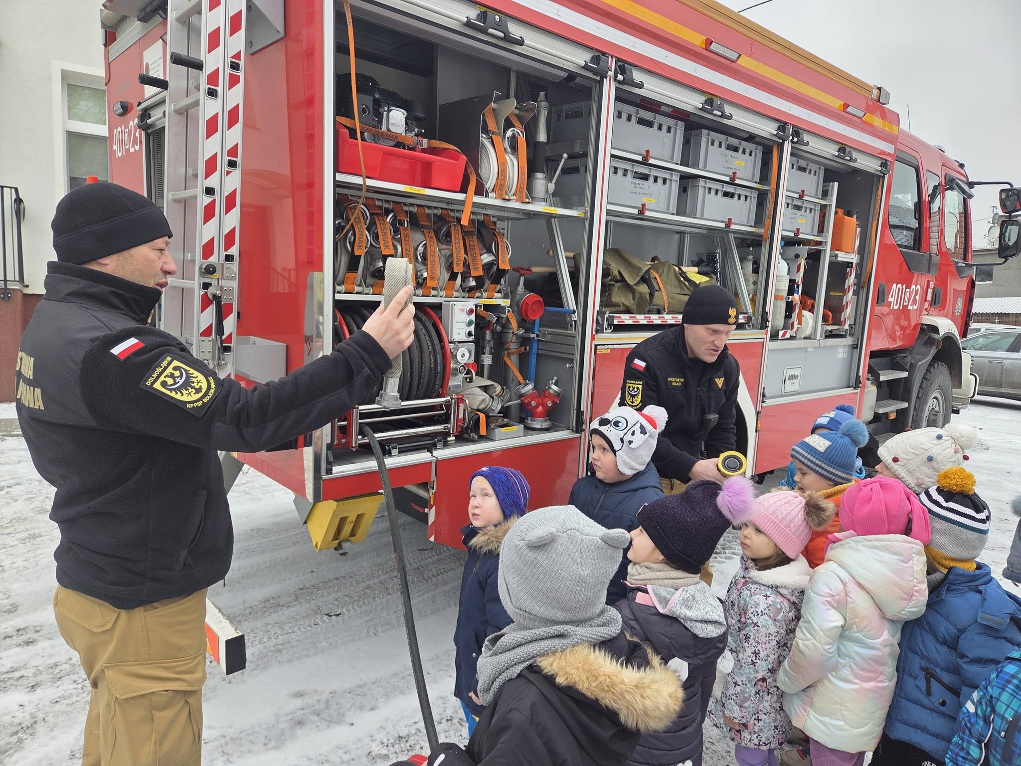 Dzisiaj w naszym przedszkolu odbyło się spotkanie ze strażakami z Komenda Powiatowa Państwowej Straży Pożarnej w Bolesławcu