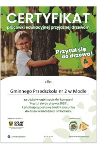 Miło nam poinformować, że Gminne Przedszkole Nr 2 w Modle po raz drugi wzięło udział w ogólnopolskiej kampanii „Strażnicy Lasów – Przytul się do drzewa 2025”.![]()