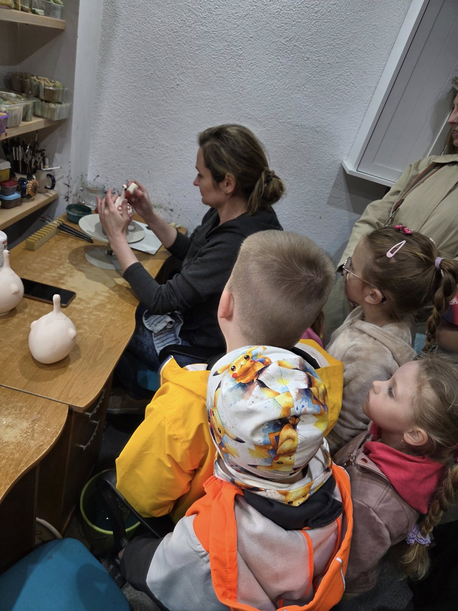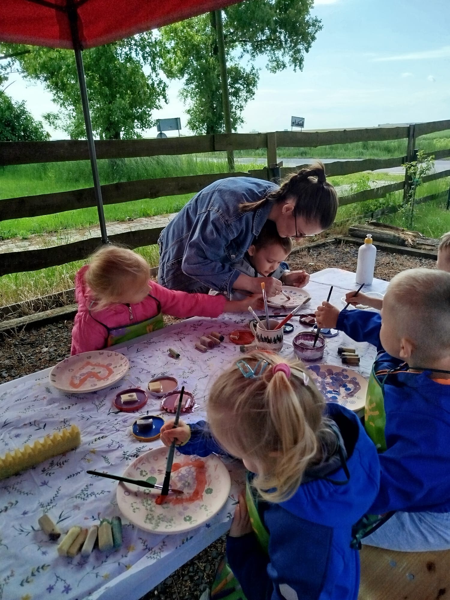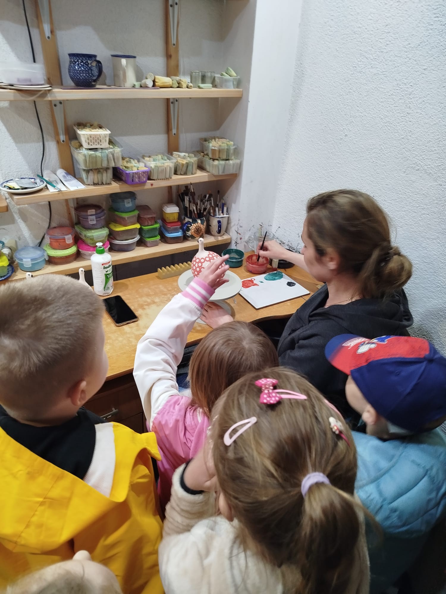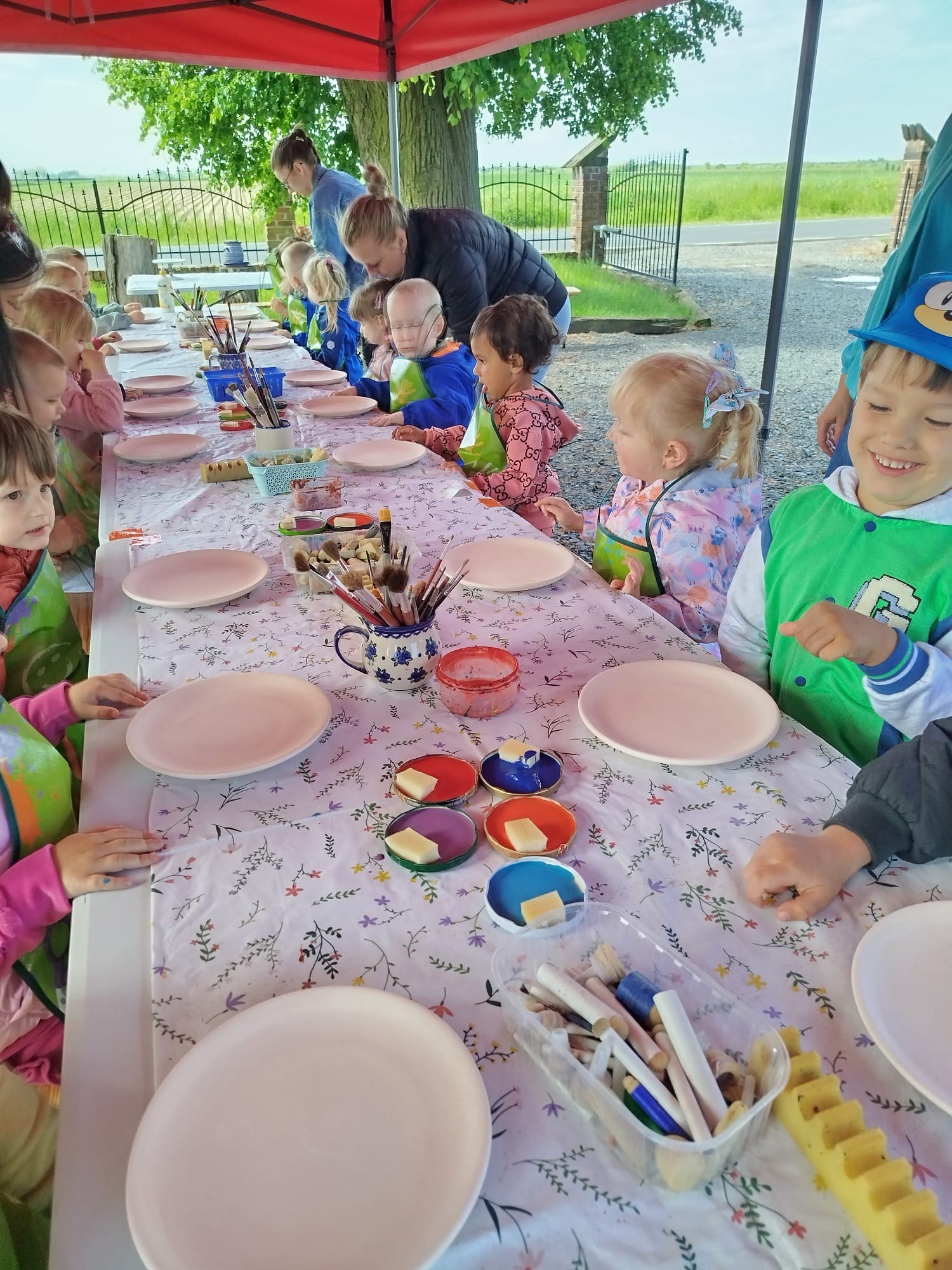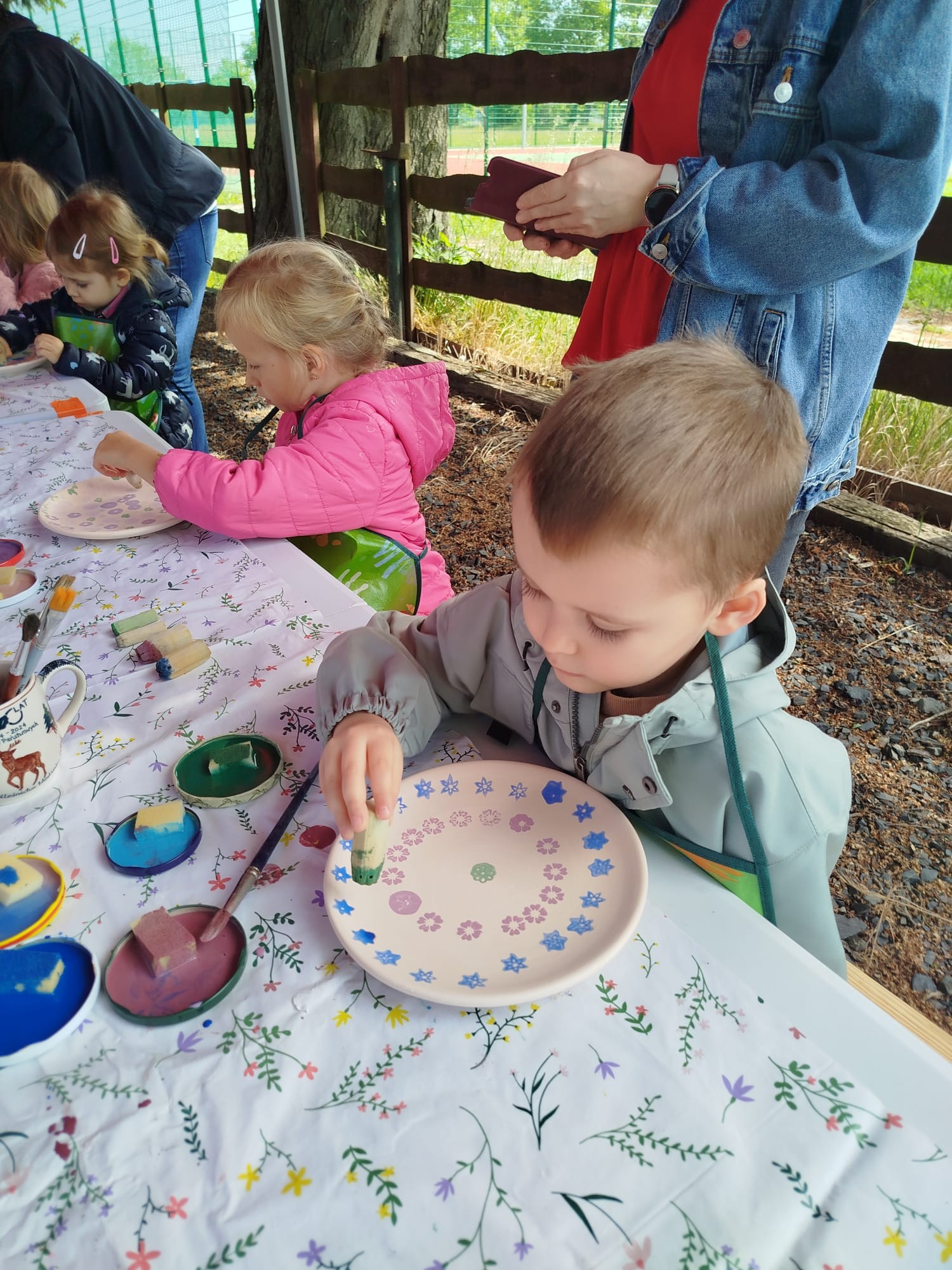 Warsztaty odbyły się w dwóch turach, by każda grupa przedszkolna mogła komfortowo uczestniczyć w zajęciach. Pod czujnym okiem Pani Basi, właścicielki Ceramiki ROSE, dzieci poznały tajniki pracy z gliną – od formowania kształtów, przez zdobienie, aż po wypalanie gotowych prac. Każdy mały uczestnik miał okazję stworzyć własną ceramiczną pamiątkę –talerzyk, który po wypaleniu otrzyma na pamiątkę udziału w tak wspaniałej inicjatywie.