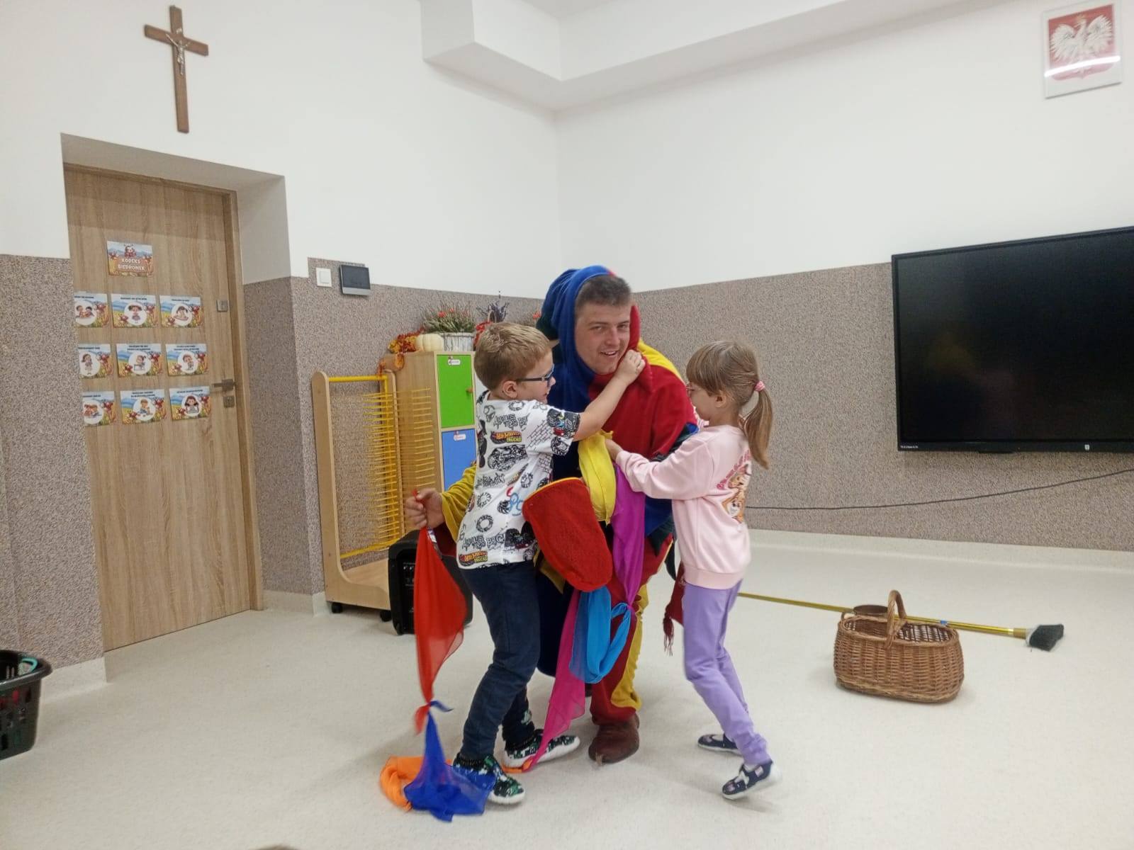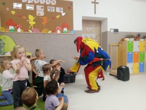 Dnia 8 października 2025 r. w naszym przedszkolu odbył się występ magika Błazna Pierona. Dzieci z ogromnym zainteresowaniem oglądały pokaz pełen kolorowych sztuczek, żartów i zabawnych sytuacji. Magik angażował przedszkolaki do wspólnej zabawy, dzięki czemu dzieci mogły aktywnie uczestniczyć w pokazie, rozwijając swoją wyobraźnię, kreatywność oraz koncentrację uwagi.